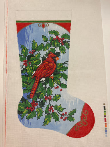 Holly and Bells on Kristen Large Stocking KCD7602 13 mesh 11" X 19" Designed by KCN Designers