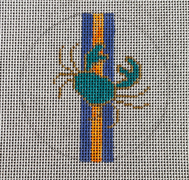 $90.00| /Crab on Stripe O-19 4" round on 13 mesh Designed by Suzie Vallerie for VNG Canvas