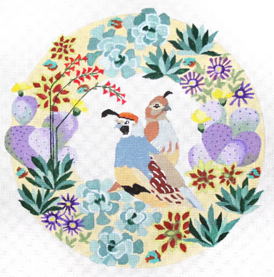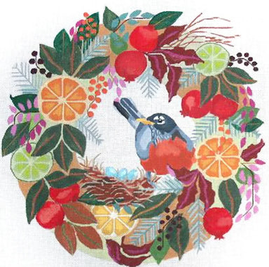 Finches in Spring Wreath B371 14" x 14" on 18 count mesh Designed by: Melissa Prince