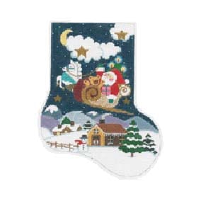 $395.00| /Santa's Rest Stop Stocking Canvas 13 count 19 Inches long Designed by Melissa Prince H278