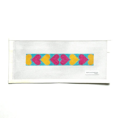 Heart key fob - Pink Yellow and sky blue The key to my heart—this key fob needlepoint canvas has a simple pattern of red and pink hearts on a blue ...