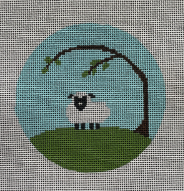 Spring Lamb O-04 4" round on 18 mesh Designed by Suzie Vallerie for VNG Canvas