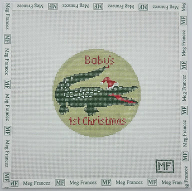 Alligator Baby's First Christmas Green 4" round on 18count mesh