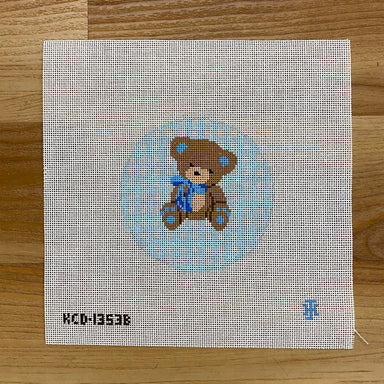 Teddy Bear on Gingham Round - Blue KCD1353B 18 Mesh 4" Round KCN Designers