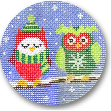$87.00| /OWL W/SNOWFLAKE ON SWEATER DK-EX 33 13 Count 4 INCH ROUND Designed by Designs by Karen for CBK Designs