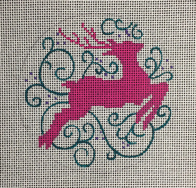 Gold Reindeer Round Hinged Box Canvas with Hardware Canvas 18 count 10 x 7 Designed by Funda Scully FS-R-29A
