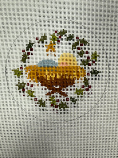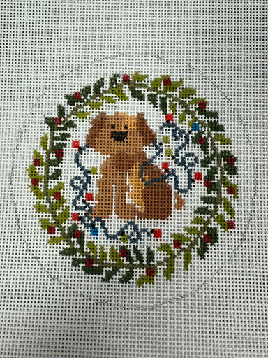 Dog with lights RC026 4" round 18 count canvas Designed by Ruthie Carlson for Walker Distr.