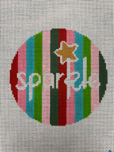 Flower on Stripes E-03 Mesh: 18 mesh Design Size: 4" round By Lauren Bloch Designs