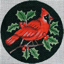 $90.00| /Cardinal/Holly DO155 4" round 18 COUNT Vallerie Needlepoint Gallery