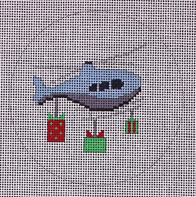 $90.00| /Christmas Helicopter O-072 4" rnd on 18 mesh Vallerie Needlepoint Gallery