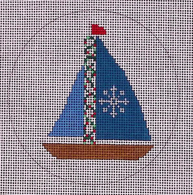 $90.00| /Christmas Sailboat O-076 4" rnd on 18 mesh Vallerie Needlepoint Gallery