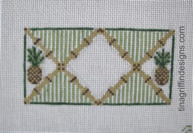 Pineapple-Sm. to Personalize REC-009S/P 18 count mesh 4"w x 2"h 3 letter monogram chart included TINA GRIFFIN DESIGNS