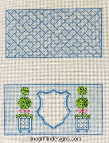 Topiary Glasses Case to Personalize REC-010 18 count mesh 7"w x 3.5"h x2 3 letter monogram chart included TINA GRIFFIN DESIGNS