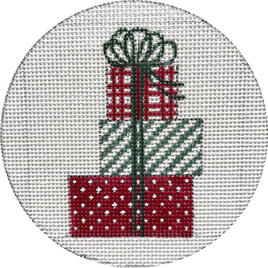 Stacked Gifts- Red x613 By Alice Peterson Company 5" round on 13 count mesh