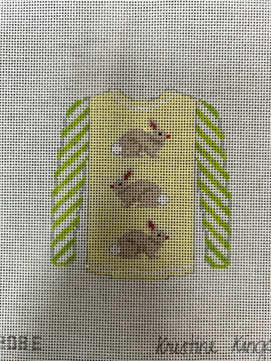 Three Bunny Sweater Yellow KKO-208E 3.5” x 4” on 18 count mesh Designed by Kristine Kingston