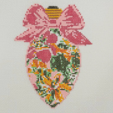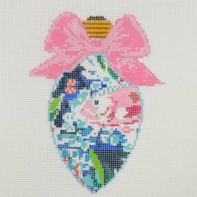 Bow Bulb Pink Floral BW2166NBL Design Size 3.5" x 5" on 18 Mesh design by Needlepoint by Laura for Blue Waters Needlepoint