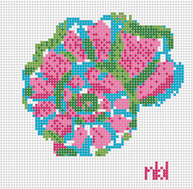 Hydrangea BW2024NBL design by Needlepoint by Laura for Blue Waters Needlepoint Design Size 4" Square on 13 Mesh