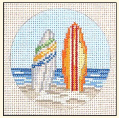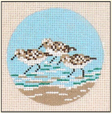 Flamingos w/SG SP-36 4.5" round 18 count mesh Designed by Scott Partridge for VNG Canvas