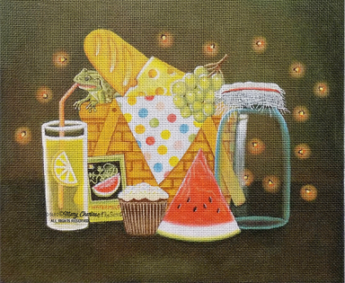 Mangos JU54 12 mesh Design size: 16×16 Canvas size: 20×20 Designed by Julie Pischke