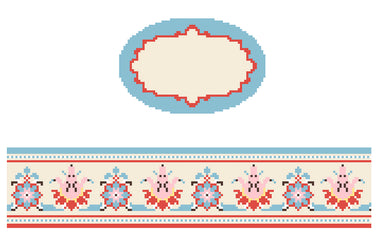 Red Village Hinged Box FS  O-65 Hinged Box Canvas with Hardware Canvas 18 count 10 x 7 Designed by Funda Scully