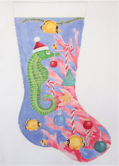 Scott Church is known for his whimsy with animals. His designs will leave a smile on your face. Seahorse Decorating the Tree Stocking SC-XM 08 Canv...