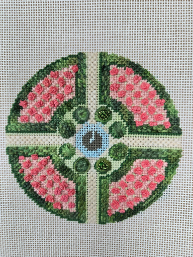 4" Round ornament on 18 count mesh Designed by OKS Designs exclusively for Needlepoint Junction
