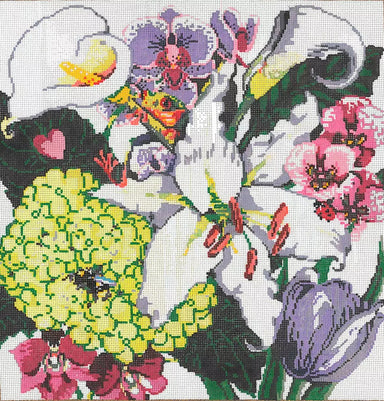 $99.00| /Bow Bulb Floral BW2161NBL Design Size 3.5" x 5" on 18 Mesh design by Needlepoint by Laura for Blue Waters Needlepoint