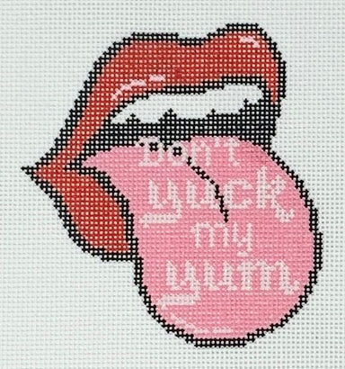 Don't Yuck My Yum S-17 Canvas 18 mesh 3.5w x 3.75h Designed by Lauren Bloch