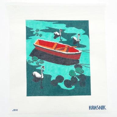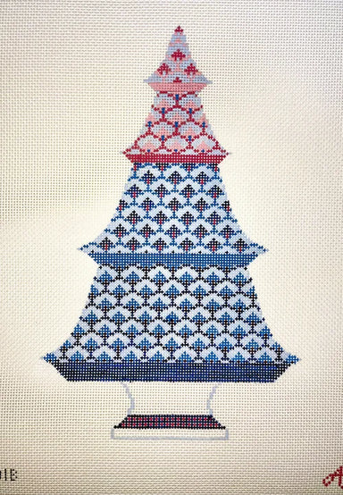 Anne Fisher Blue and Red Scallop Tree AFCT01B 14 COUNT 10.75 x 6.75