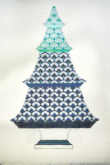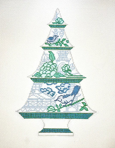 Anne Fisher Green and Blue Scallop Tree AFCT02B 14 COUNT 10.75 x 6.75