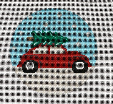 Volkswagon Christmas SV-C008 4" round on 18 mesh Designed by Suzie Vallerie for VNG Canvas