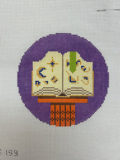 Witchy Accessory Spell Book SAS199 4" Round 18 COUNT Designed by Saturnalia Stitching exclusive to Needlepoint Junction
