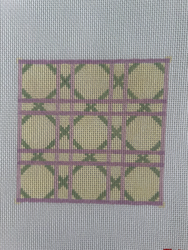 Lavender Cane Coaster P&P15 4” square on 18 count mesh