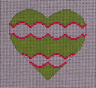 Lil Green Heart H-52 3" x 3" on 18 mesh Vallerie Needlepoint Gallery