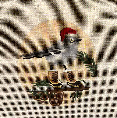 Bird with Santa hat 18 COUNT 3.75 x 3.5 Oval Designed by Scott Church for CBK Designs