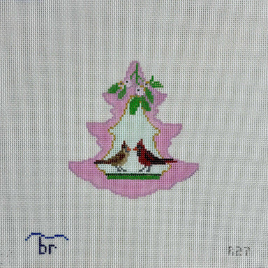 Pink Tree - Cardinal Pair under Mistletoe R27 18 count 3.75" x 4" Designed by Blue Ridge Stitchery