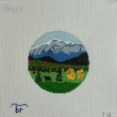 Sunset Ridge T5 18 count 4.25" round Designed by Blue Ridge Stitchery