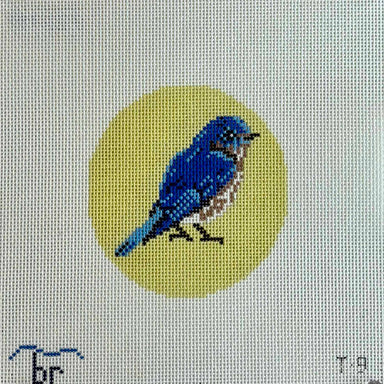 Bluebird T9 14 count 4.25" round Designed by Blue Ridge Stitchery