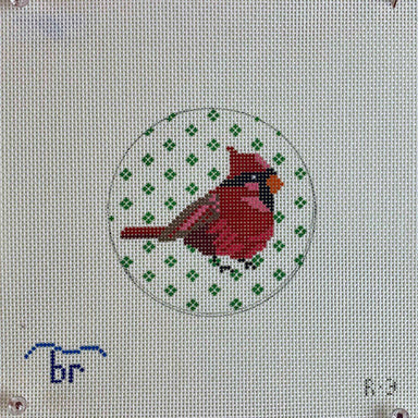 Cardinal R3 13 count 4.25" round Designed by Blue Ridge Stitchery