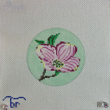 Dogwood Blossom R5 13 count 4.25" round Designed by Blue Ridge Stitchery