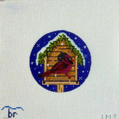 Birdhouse - Cardinal LM5 16 count mesh 4" round Designed by Blue Ridge Stitchery