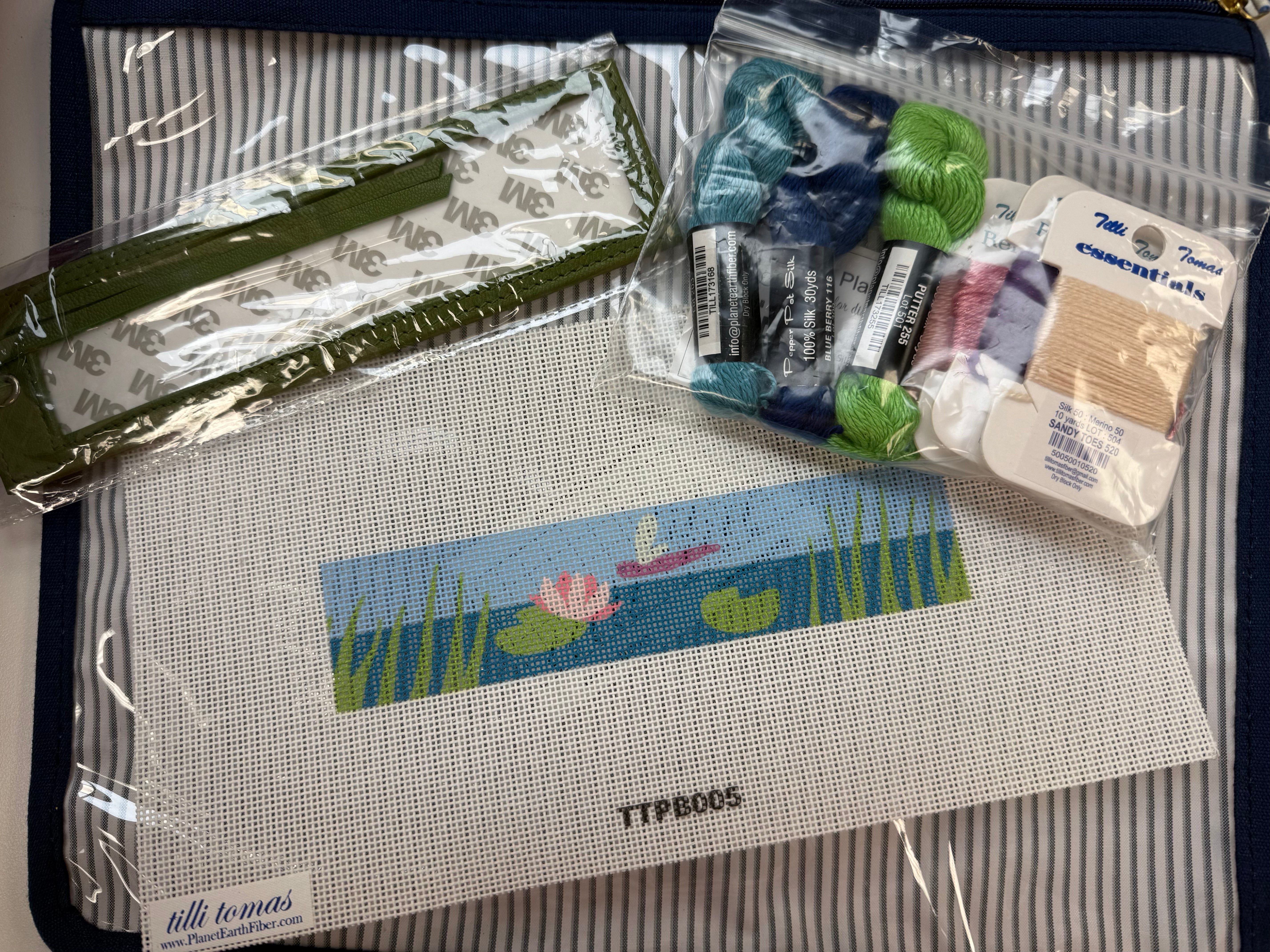 Kit comes with pouch. bookmark, canvas and threads