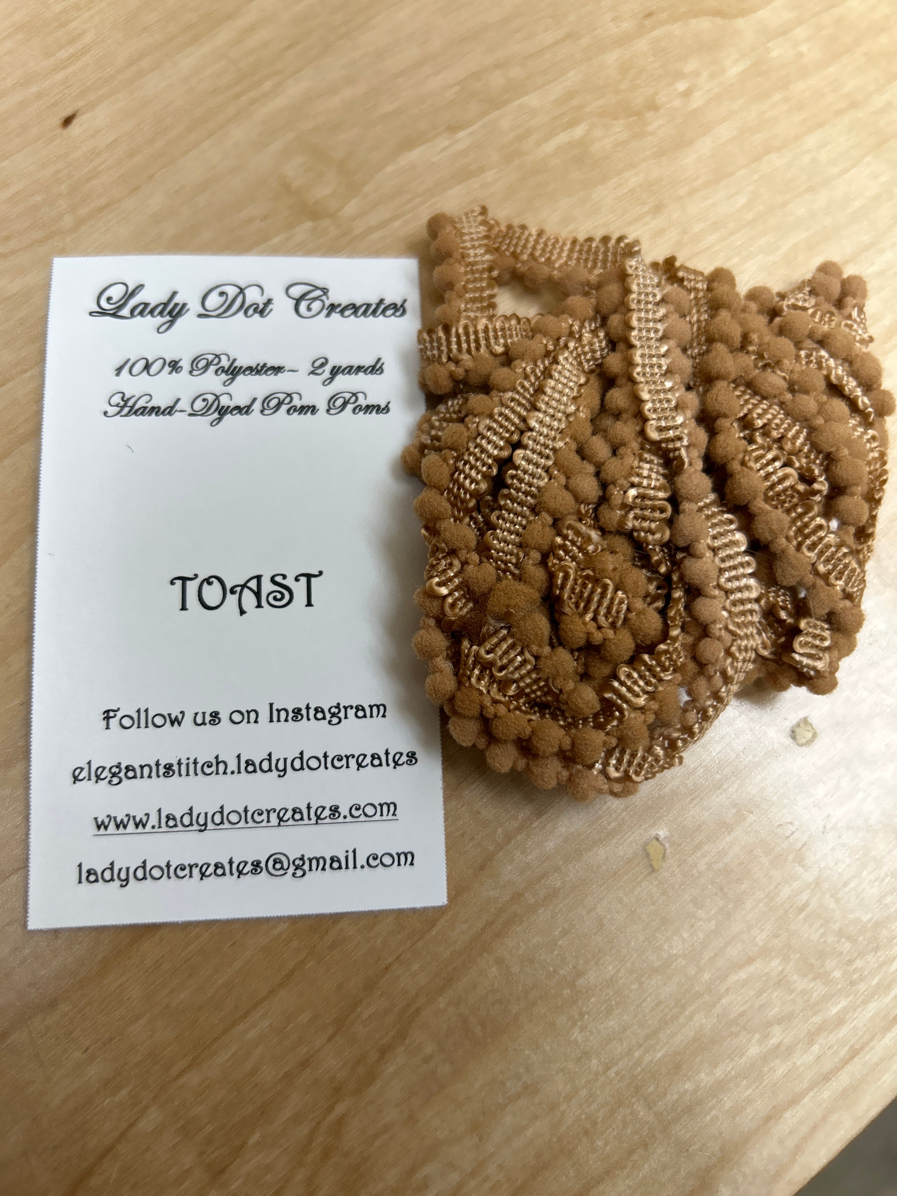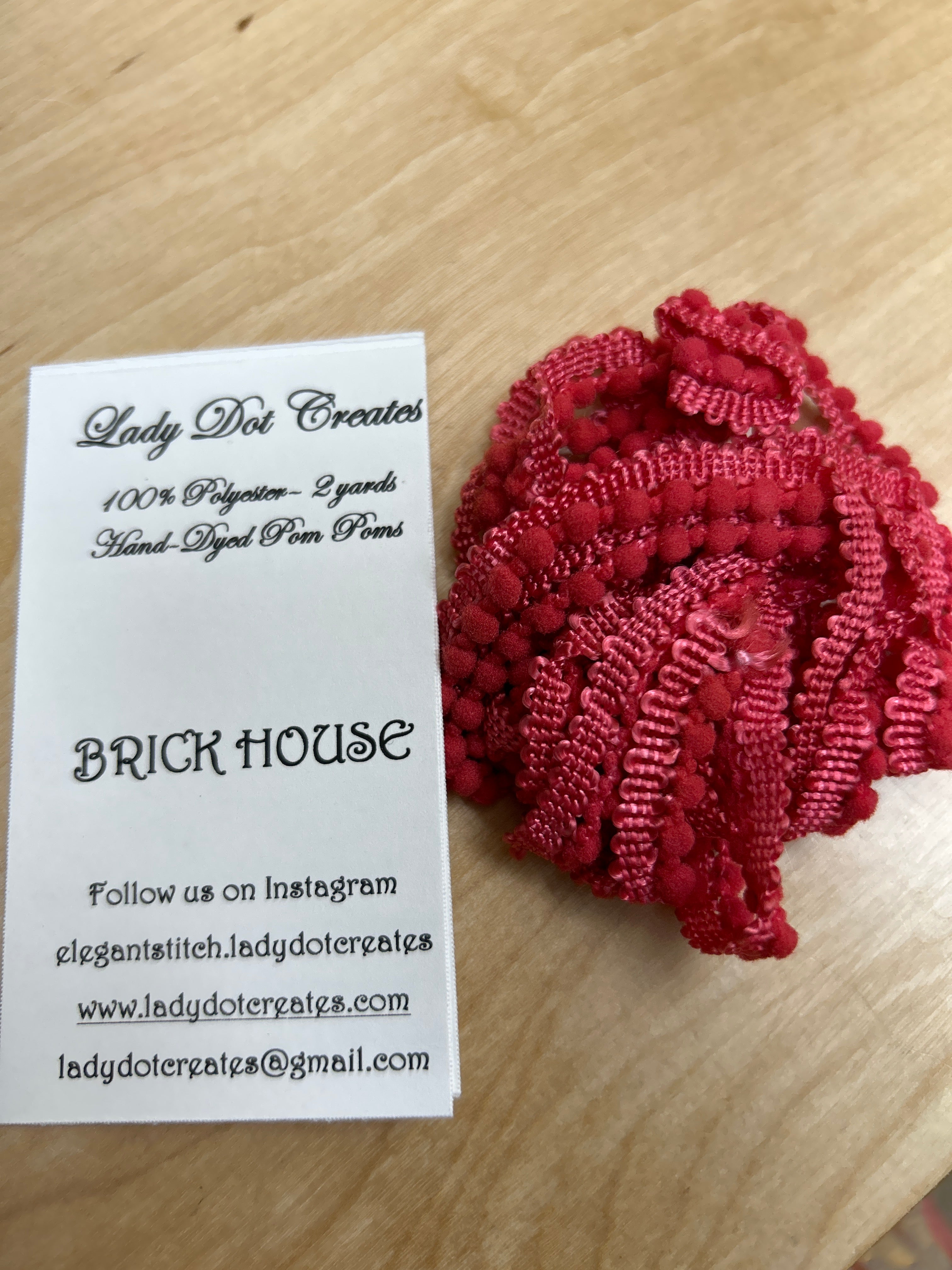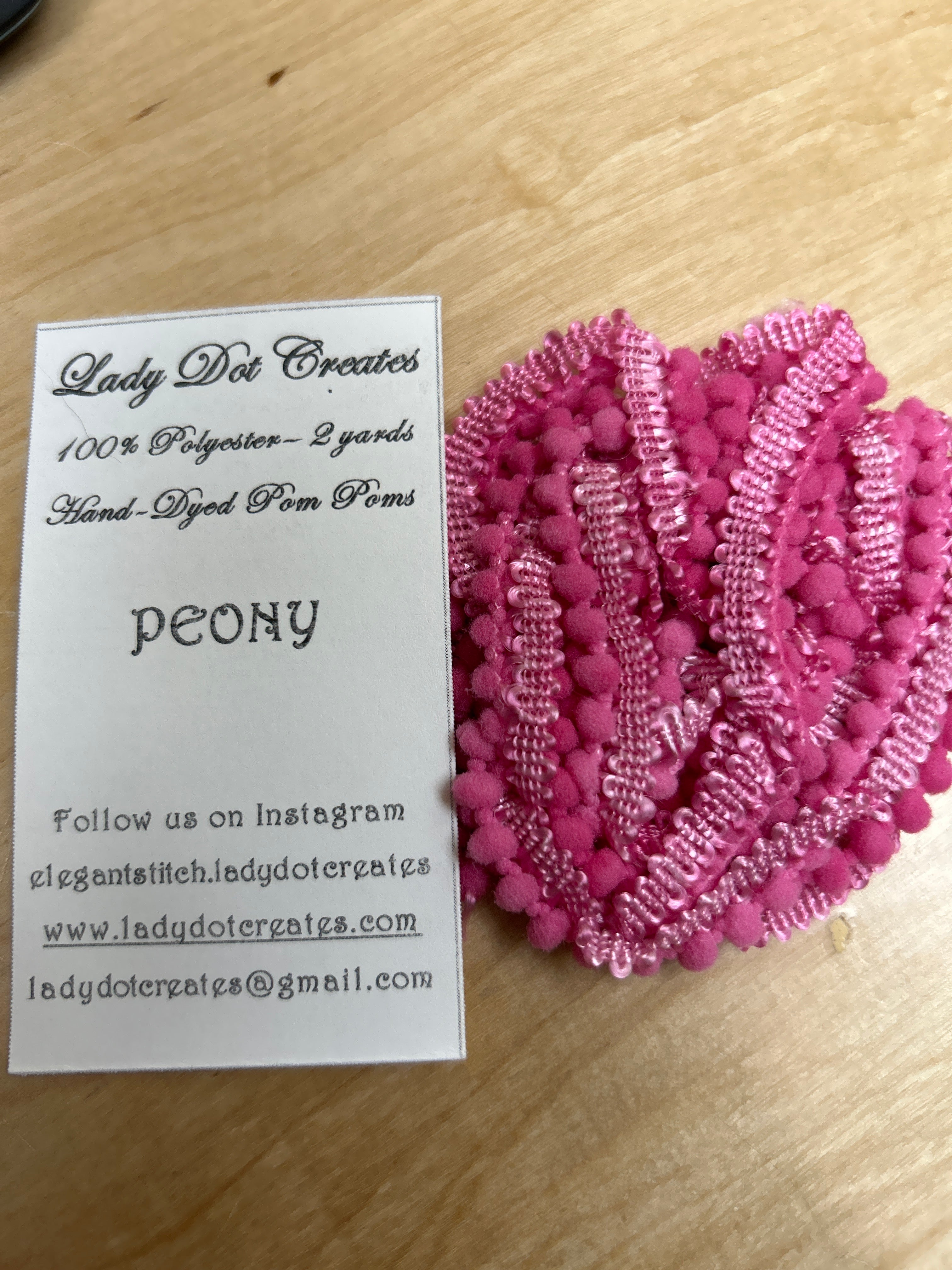 Zoom icon Click to expand Tap to zoom Chevron down icon Chevron down icon Rainbow Gallery Hand-Dyed Pom Poms $6.00 Availability: Translation missing: en.general.icons.icon_check_circle icon Only 1 left! Ballerina - $6.00 Barn Door - $6.00 Brick House - $6.00 Licorice - $6.00 Peony - $6.00 Robin Egg - $6.00 Sizzle - $6.00 Snow - Sold out Toast - $6.00 Vintage - Sold out Ballerina Barn Door Brick House Licorice Peony Robin Egg Sizzle Snow Toast Vintage Color Chevron down icon 1 2 3 4 5 6 7 8 9 10+ Quantity Chevron down icon Quantity Add to cart Spinner icon This item is a recurring or deferred purchase. By continuing, I agree to the cancellation policy and authorize you to charge my payment method at the prices, frequency and dates listed on this page until my order is fulfilled or I cancel, if permitted. Notify me when back in stock Email address Email me when available Hand-Dyed Pom Poms Lady Dot Creates